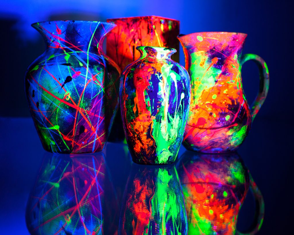 Artworks that, although lovely to look at in daylight, really come to life when the lights UV illuminates.