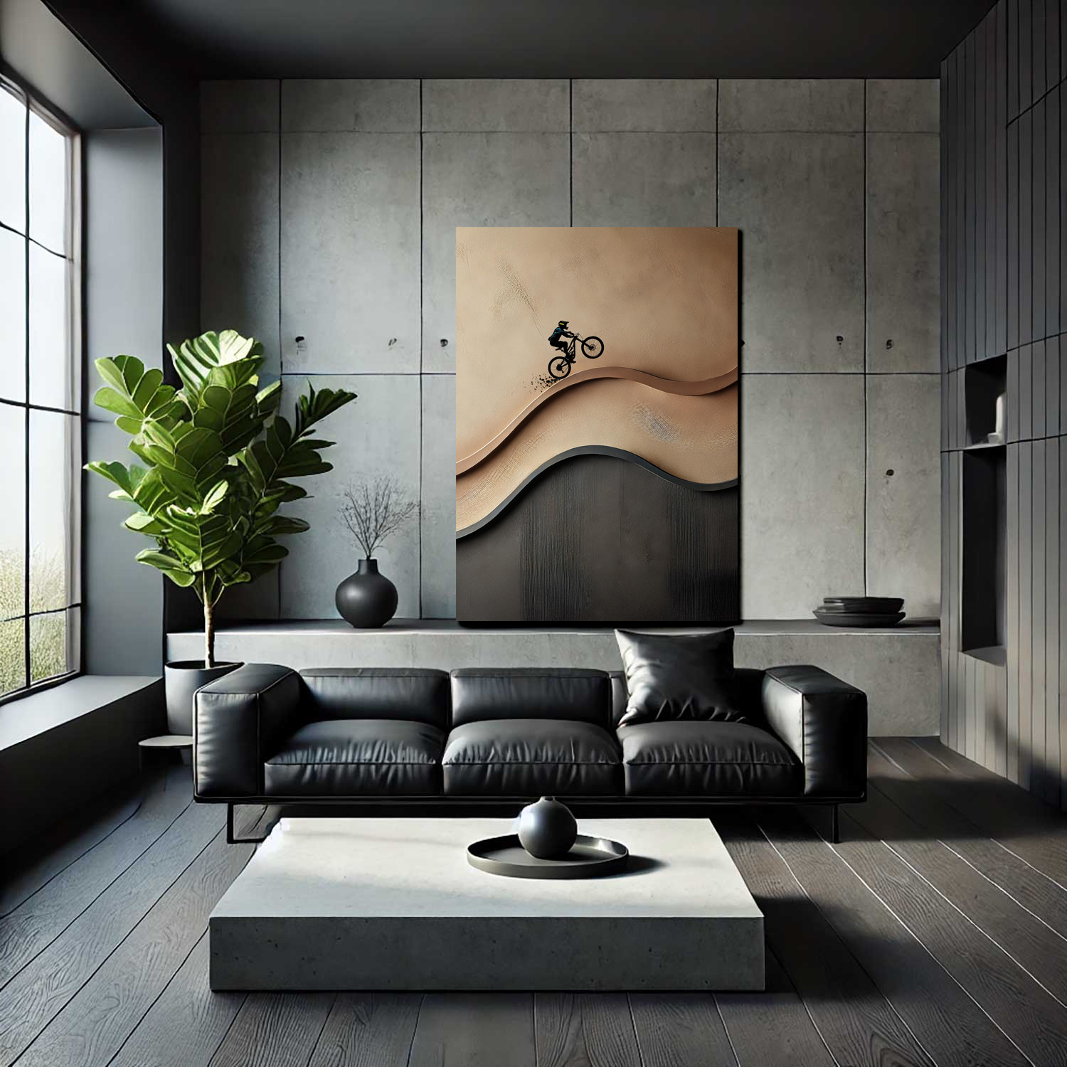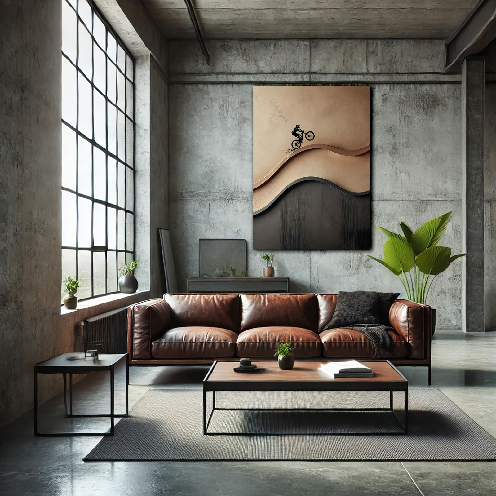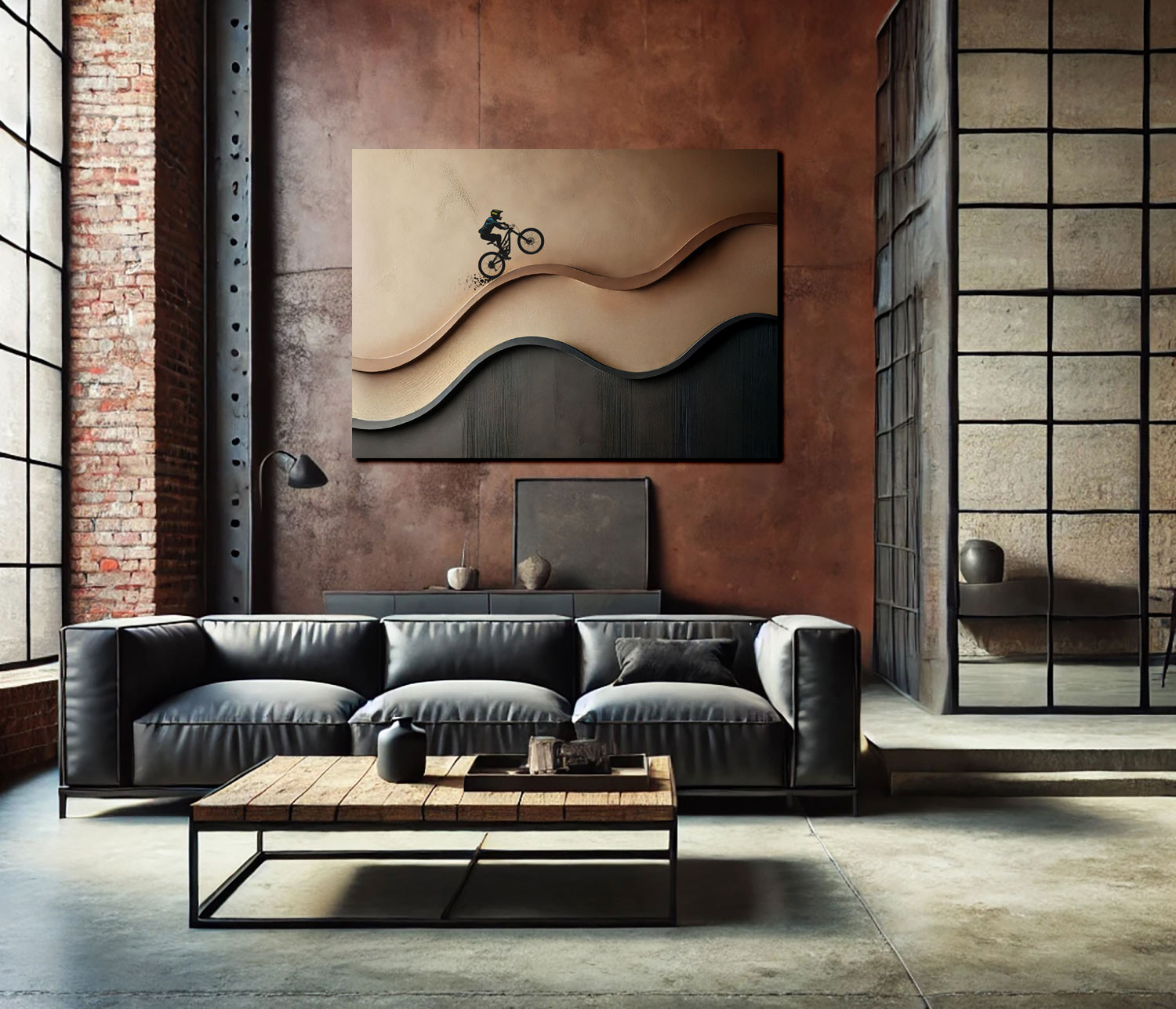 This original painting captures the freedom and energy of the mountain bike in a bold yet minimalist way. Hand-painted on stretched canvas with textured layers, it presents a cyclist moving through a brown abstract landscape combining sport, motion and modern art into one striking piece.
